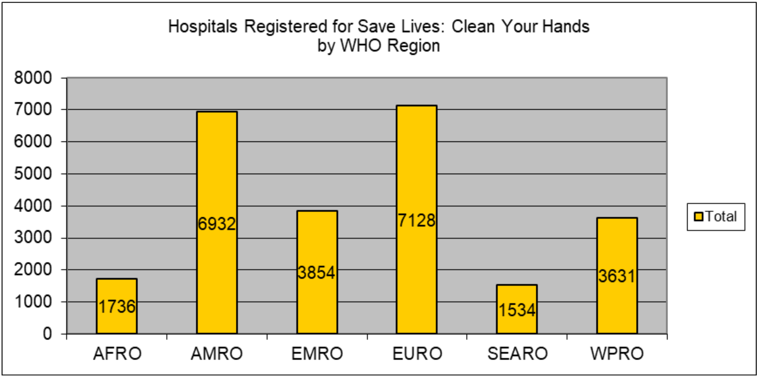 As of 28 April 2021, a total of to 24815 hospitals and health-care facilities in 184 countries or areas have registered their commitment to hand hygiene as part of the global campaign – SAVE LIVES: Clean Your Hands. Numbers are not 100% correct due to duplicated submissions of data; number of staff and beds – as submitted by registrants.