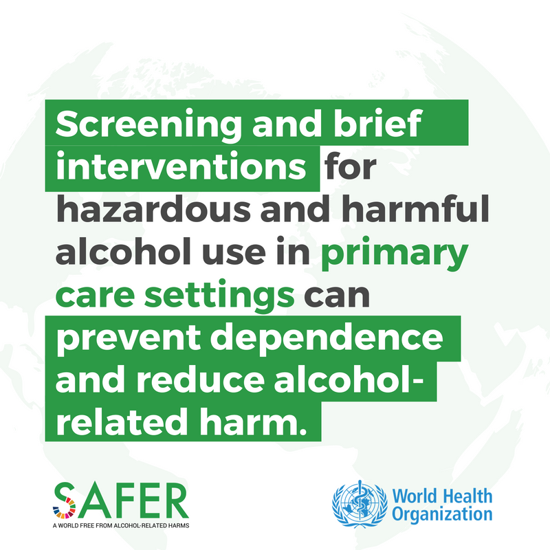 Health professionals have an important role in helping people to reduce or stop their drinking to reduce health risks, and health services have to provide effective interventions for those in need of help and their families.
